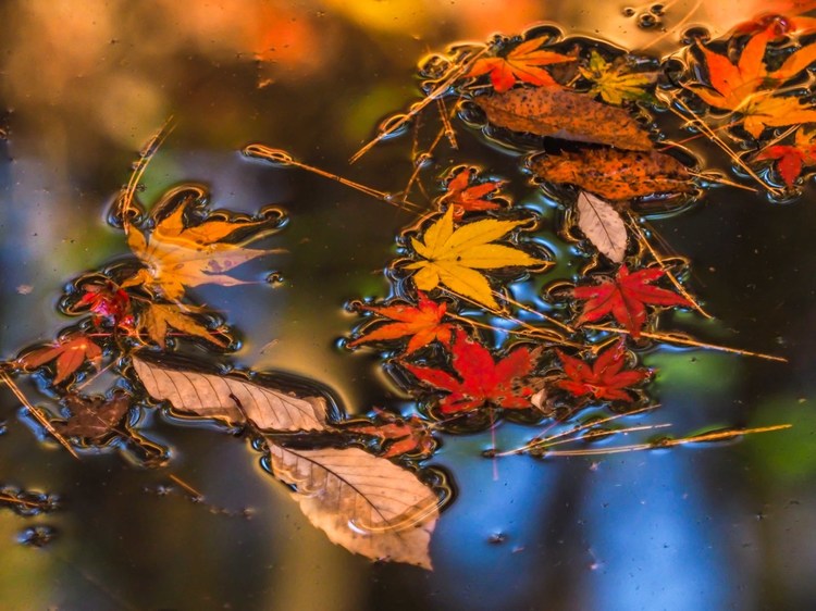 インスタ映えするようなこのような作品は紅葉を集めてこのような形にしてその場でホワイトバランスを変えてみたり後処理で色を変えることで表現出来ました。アイデア一つで何気ない落葉も絵になりますよ。