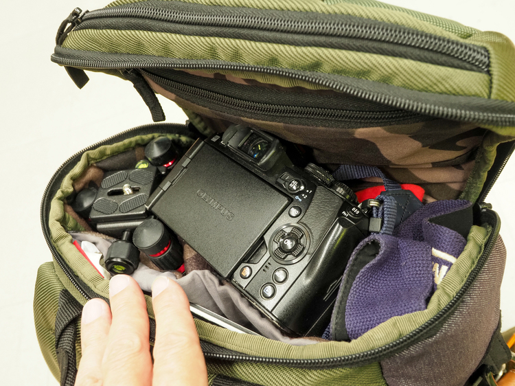 マンフロットのコラボ限定モデルで、上下二気室タイプで収納でき、中仕切りは強力なマジックテープで取り外し出来、実は13番の三脚まで収納できる優れモノです。