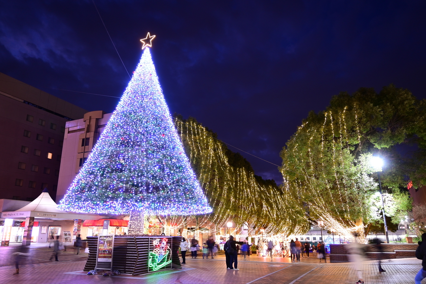 イルミネーションを撮る時間は日没から少し時間が経ったくらいがベストです。なぜなら空にまだ青みが残っている方が美しく感じませんか?真っ暗な空よりもやや青みがかった空の方が印象的になります。なので撮影場所には日没より前の明るい時間に到着してロケハンをして備えるのがオススメです。暗くなり始めたら撮影のスタートです!