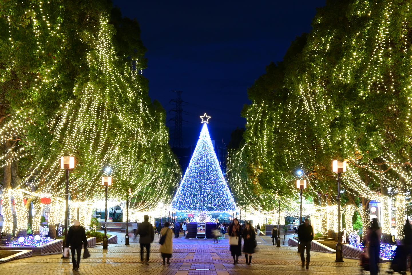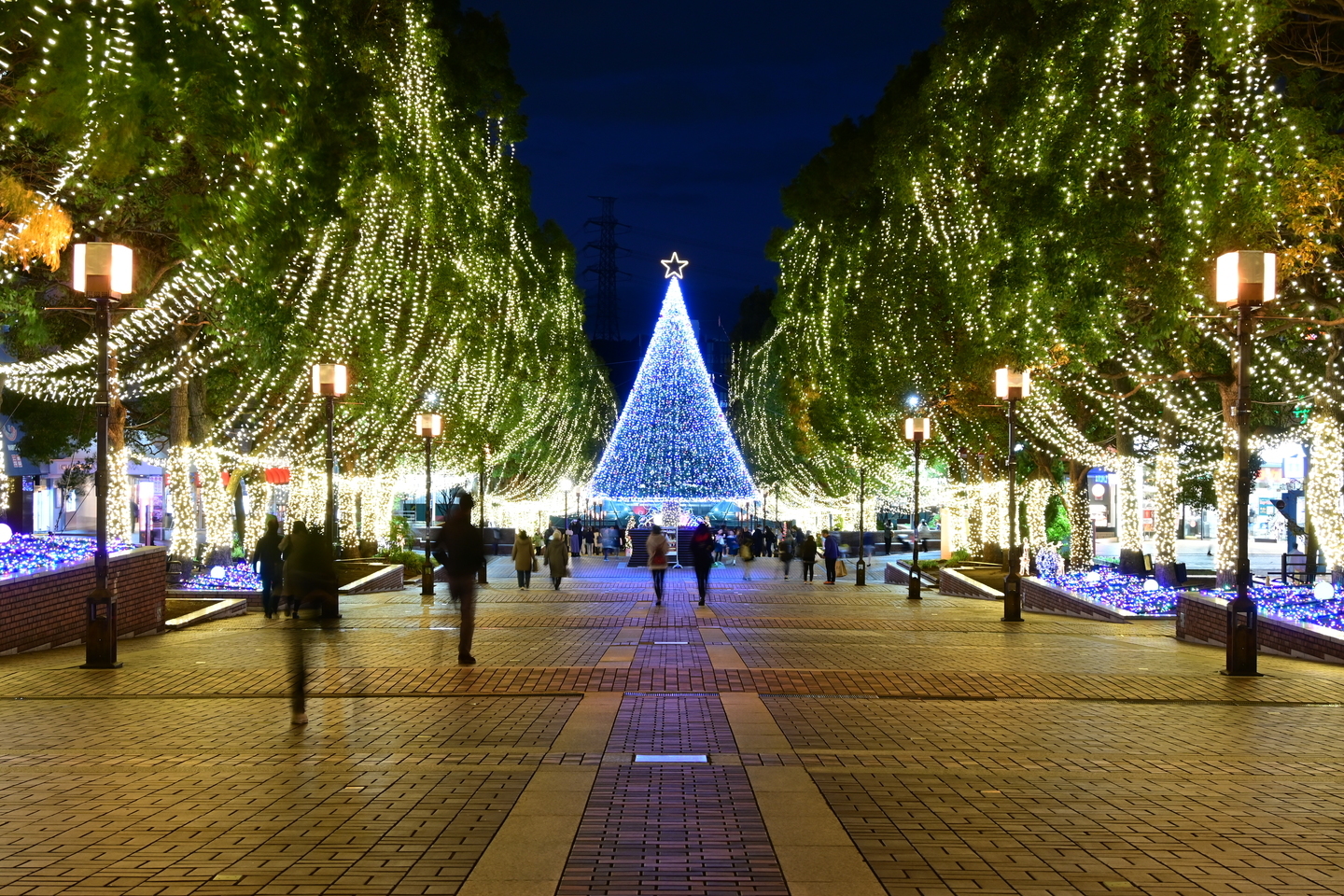 なおイルミネーションの背景に空が入らないようなシチュエーションだと、日が暮れた時間帯でも問題ありません。