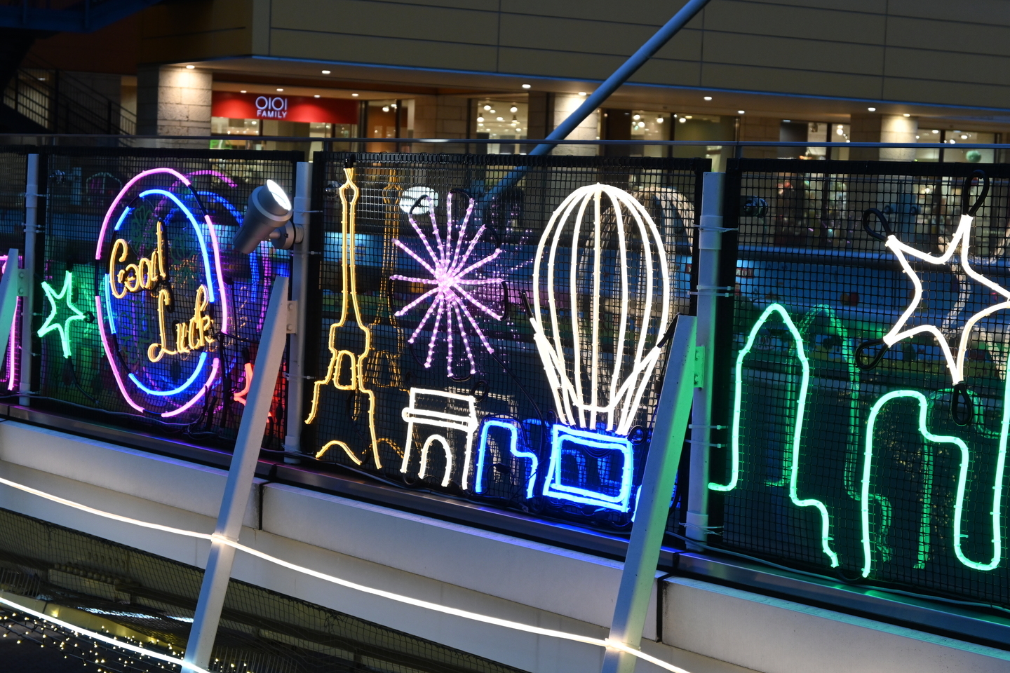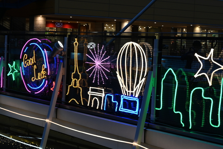 ショッピングセンターのクリスマスイルミネーションをカメラの指示通りに撮ったカットです。思ったより明るい印象に撮れました