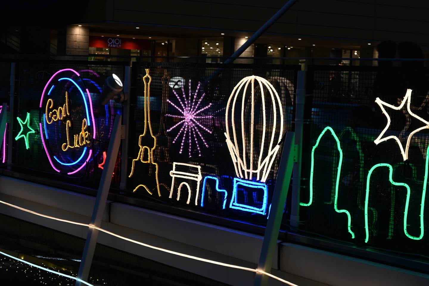 今度はマイナス2/3段の露出補正をかけました。イルミネーションの色が引き立ち、背景はより沈んでいます。みなさんはどの明るさがお好みでしょうか?どのくらいの補正をかけるかはフォトグラファーの感性次第です