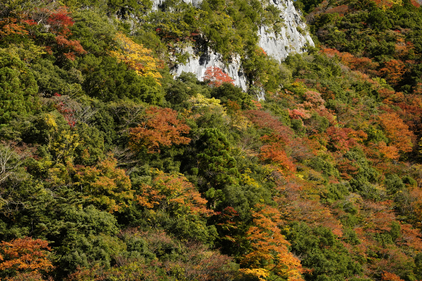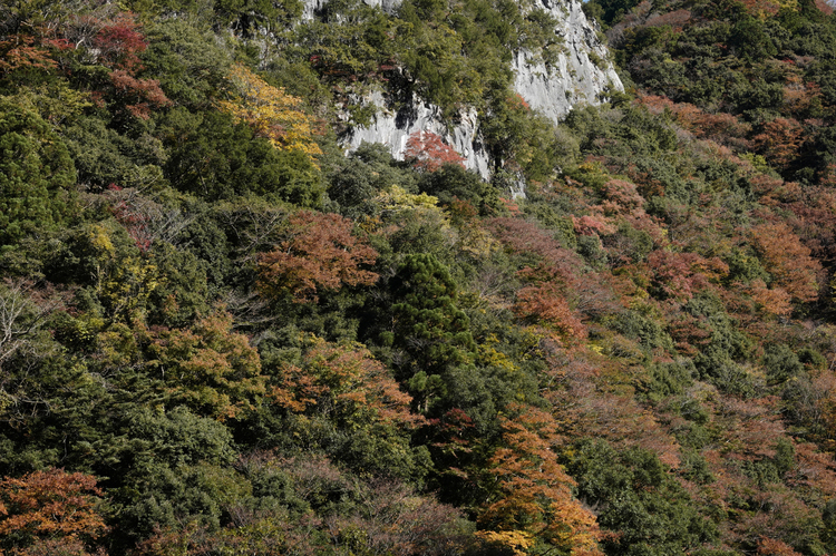 青空で効果の強弱が確認できれば、次は青空以外で試してみましょう。色の濃いものにカメラを向けた方がわかりやすいです。PL未使用、もしくはきちんと調整せず効果が弱い状態では(作例3)紅葉の色がくすんで見えるのに対してPLを適切に調整、最も効果が強い状態で使用すれば(作例4)紅葉の色を鮮やかに描くことができます。