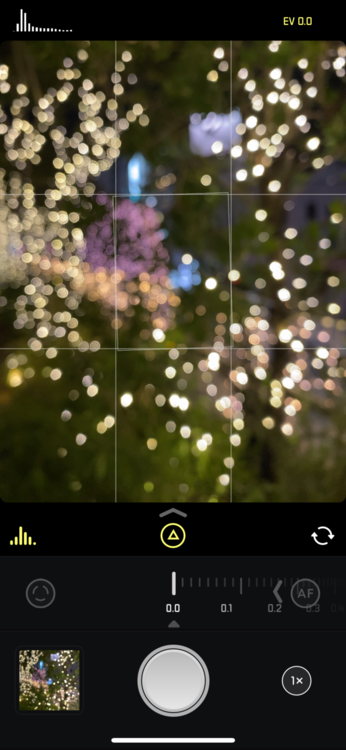 「Halide」でピントを最短撮影距離にしてシャッターを切ったところ、キレイな玉ボケが浮かび上がりました