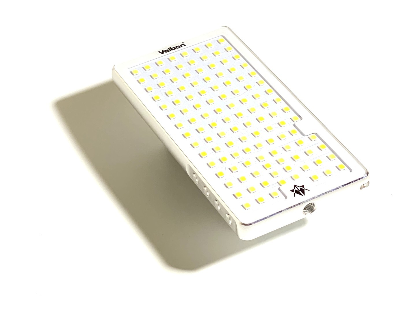 明るい昼間に自然光で撮影するのもいいですが、ここは光量が安定して、夜間でも撮影ができる照明を用意しましょう。スマートフォン内蔵のLEDライトではなく外付けのものがオススメです。内蔵のものは照射範囲が狭いだけでなく、発光部がカメラすぐ横にあるため、被写体の影が強く出てしまうからです。光量を調節でき、ホワイトバランスを変えられる便利な製品もあるのでそちらを使ってみましょう。今回は近日登場予定のベルボン「VFL-12」 を使用しました。薄型軽量で、光量とホワイトバランスも可変、三脚穴も備え、いざというときはモバイルバッテリーにもなる優れものです。