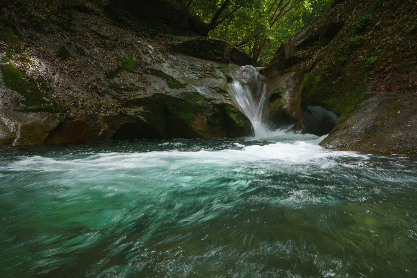 以上を踏まえたうえで話を戻しましょう。水の流れの撮影ではスローシャッターで(概ね1/8秒以下)その流れている様子を表現することが多いのですが、前述の仕組みから暗い場所でF値を絞り気味にした場合、必然的にスローシャッターになります。なので三脚をきちんと立て、カメラブレ対策を講じればNDなしでも流れの表現が可能です。