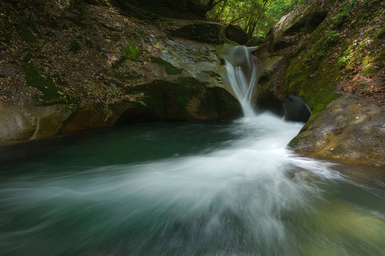 滝に直接光が当たるような状況でもNDフィルターがあれば低速シャッターを使い