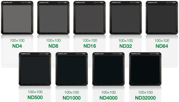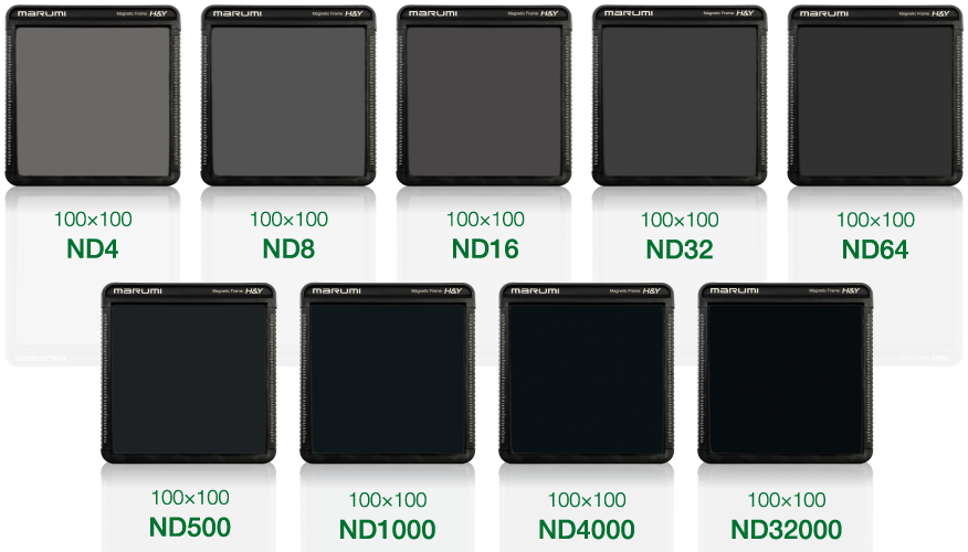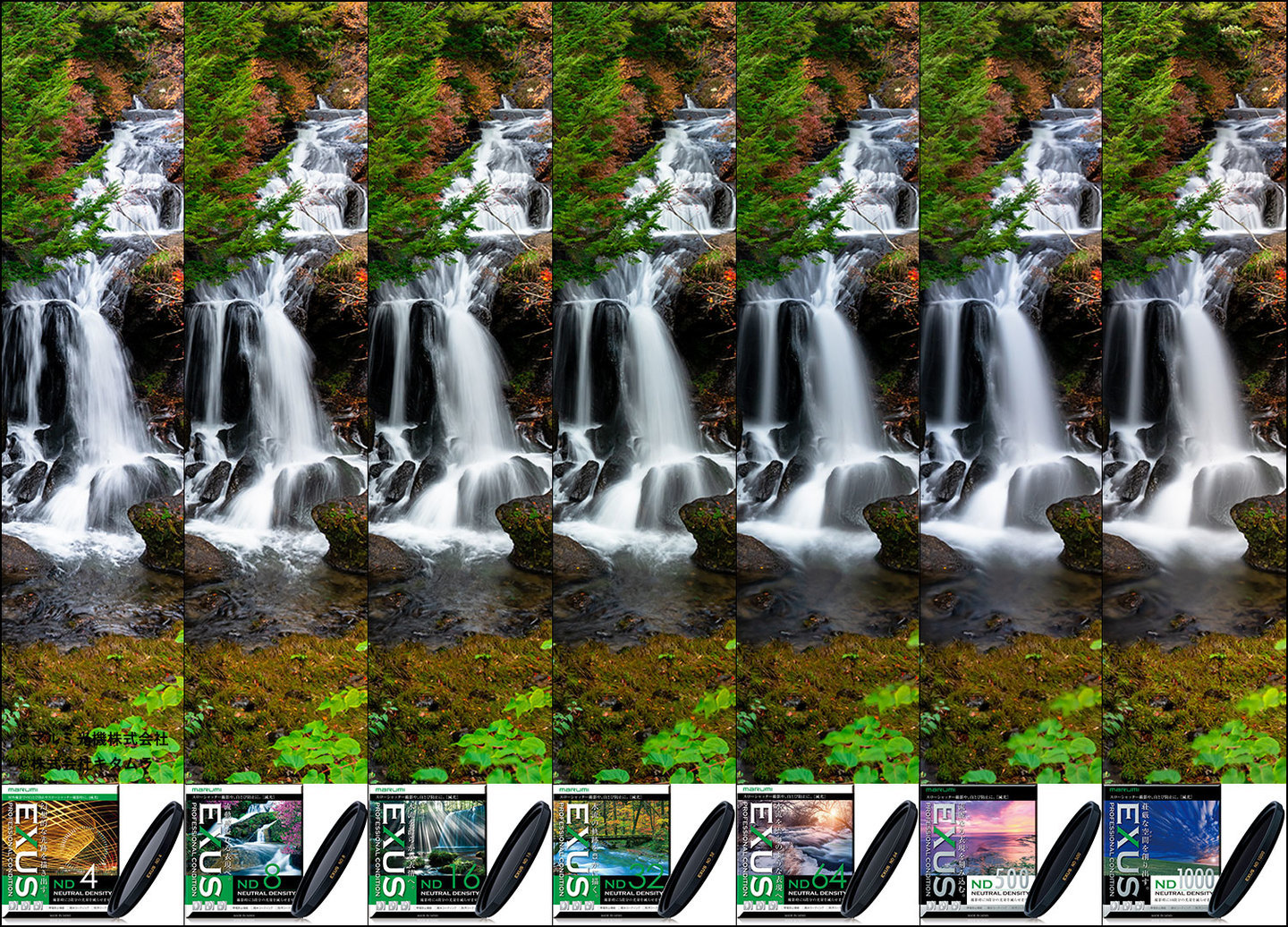代表的なものを例に挙げるとND2ならレンズを通過する光の量が半分に、ND4なら1/4に、ND8なら1/8に、ND16を装着すれば1/16になります。