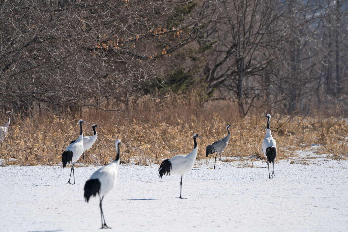 音羽橋から移動して、鶴居・伊藤タンチョウサンクチュアリに。ここではタンチョウがたくさん集まっていて、比較的撮影のしやすいポイントです。