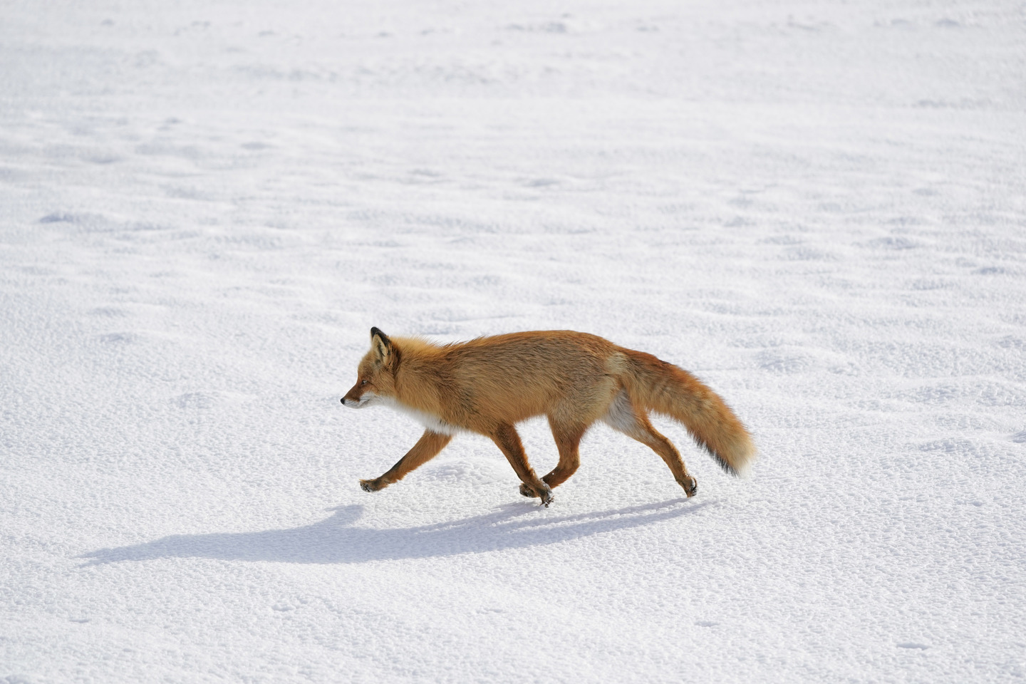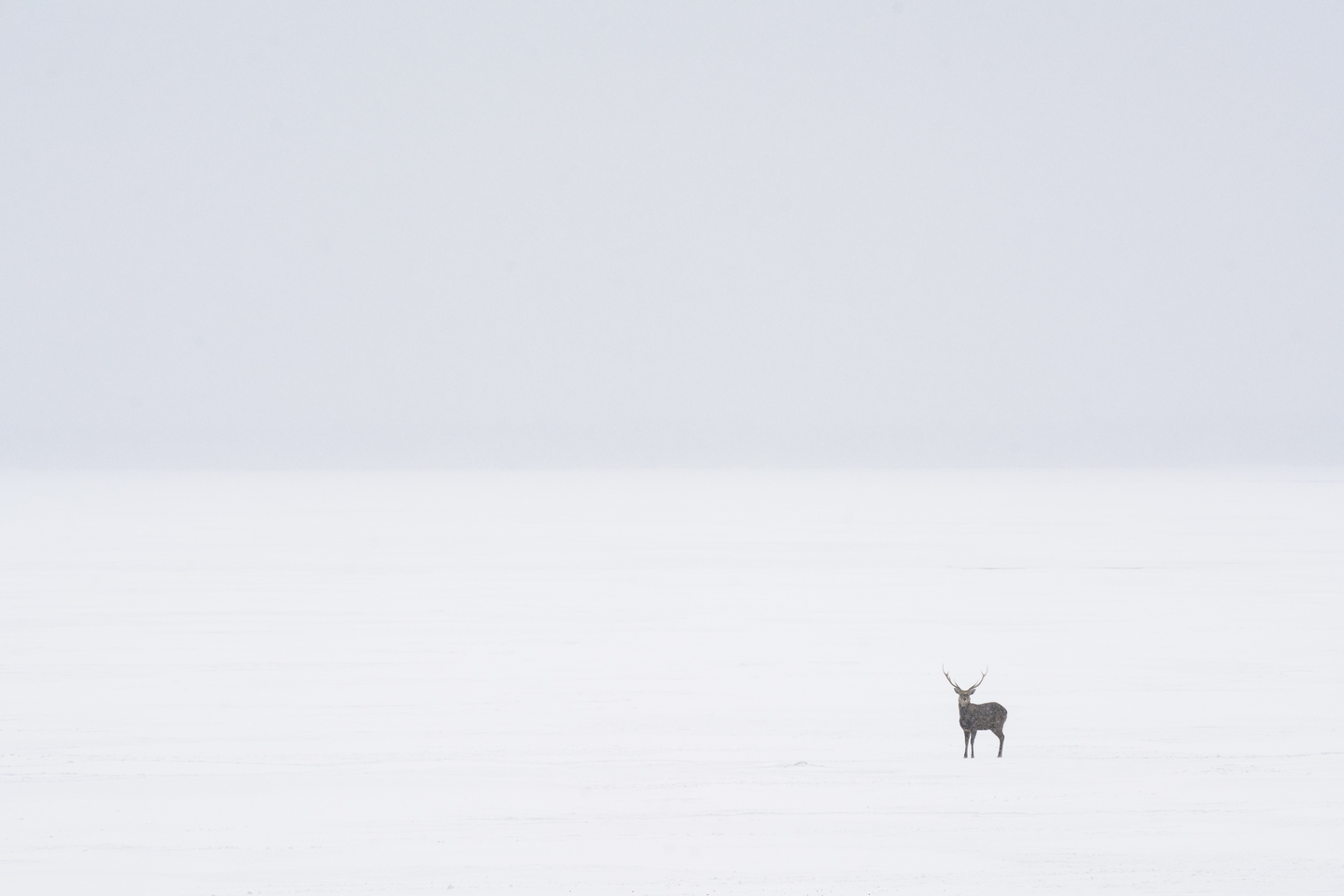 次は野付半島です。野付半島の凍った野付湾でエゾシカやキタキツネに出逢えたりします。ここでは特に一面真っ白な世界で撮影する事が出来ます。そんな中で野生動物に出逢えるととてもワクワクして夢中で撮影しちゃいますね。