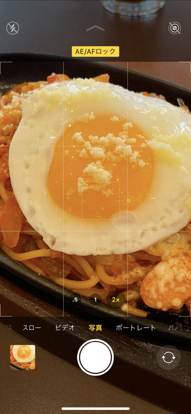 この状態のとき太陽アイコンも表示されていますが、前述のとおり指先の上下で明るさを調整することが可能です。これならイメージ通りの写真が撮りやすいですね。「AE/AFロック」を解除したい場合は画面をもう一度軽く指先でタップすればOKです。