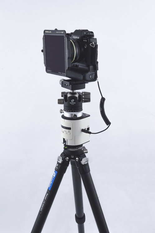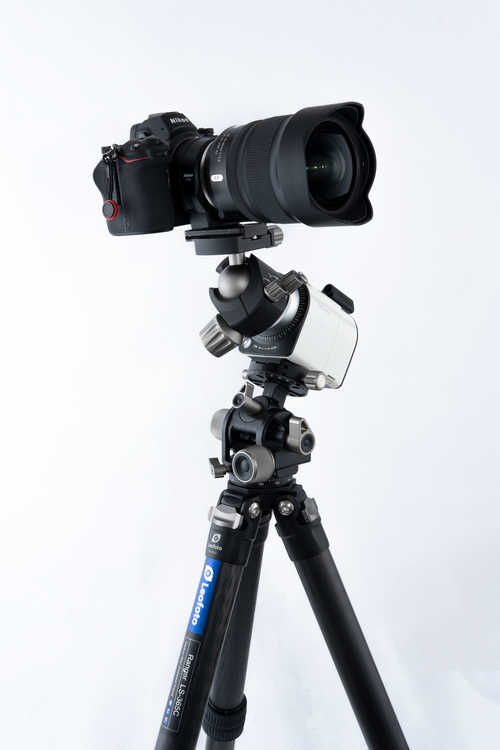 ニコンZ6にタムロンSP15-30mm/f2.8と、私が持っている中で一番大きな自由雲台を取り付けてみました。耐荷重が上がったおかげで、非常に安定感があり、どの方向に向けてもポラリエU本体がカメラに干渉することはありませんでした。赤道儀のセッティング(三脚と赤道儀の間に使用する雲台)には微調整がきくギア雲台がおすすめ。この画像で使用しているのはLeofotoの「G4」ですが、このクラスでは小型・軽量なのに動きが滑らかで非常にセッティングがしやすかったです。