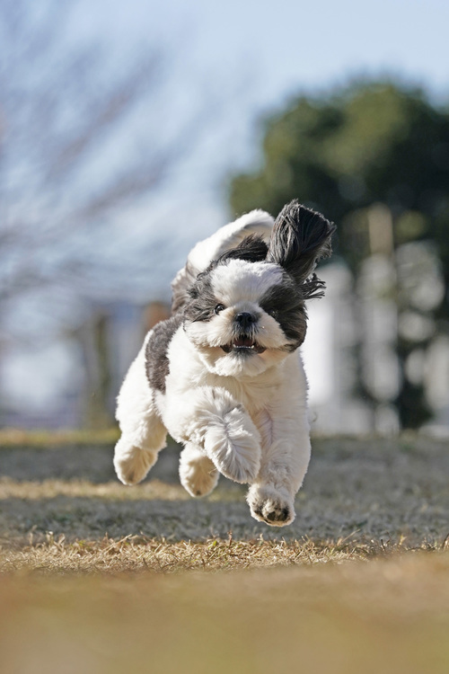 ワンちゃんの写真は、屋外での撮影が一番生き生きとしたものが撮れます。ドックランなどで思いっきり遊ぶ姿を、少し離れたとこから望遠レンズを使って撮影してみましょう。