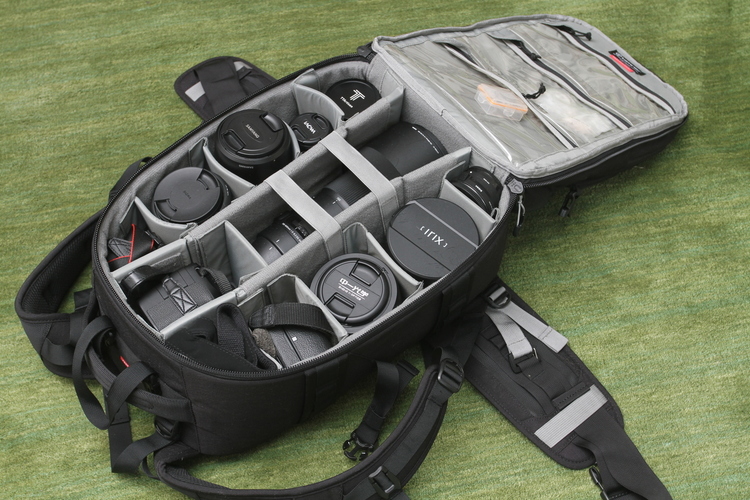 最高級クラスのカメラバッグは、何が違うのかと聞かれると、縫製や素材など細かな違いもたくさんありとても難しいのですが、似たような素材でできているのに、安価なカメラバッグから受けるフニャフニャ感がまったくありません。軽いのにカッチリしていて、このカッチリ感が、機材をぎっちりと詰め込んだときの安心感に繋がっています。