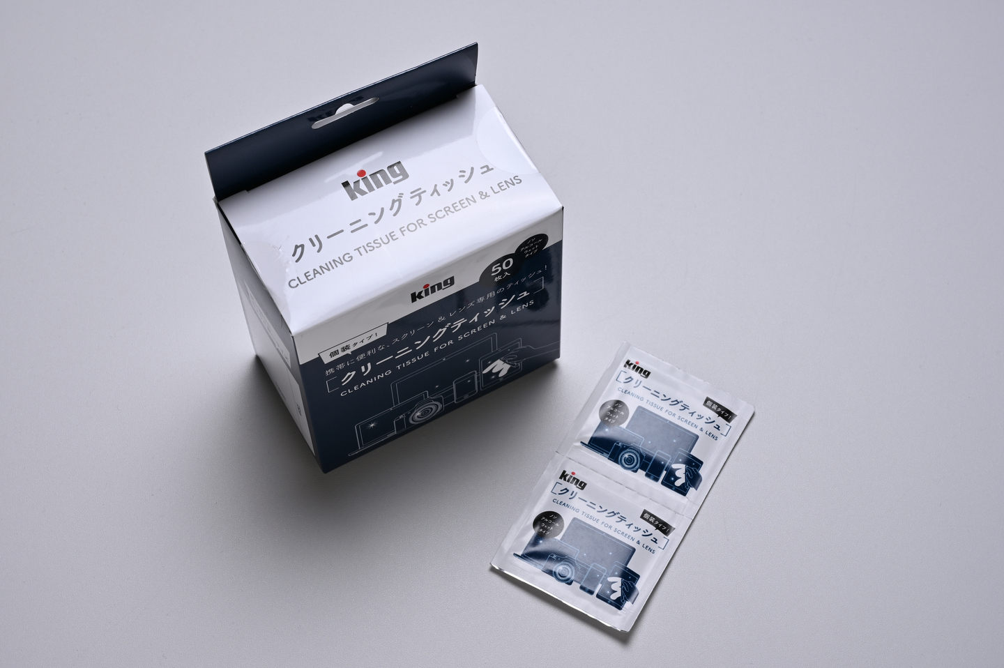 レンズやファインダー接眼部などを拭く、アルコールなどの薬剤を染み込ませた専用のクリーニングペーパーです。ペーパー単体とレンズクリーニング液単体を組み合わせて使うものもありますが、薬剤を適量染み込ませるのが難しく拭きむらができたりするので、初心者はあらかじめ薬剤を染み込ませた製品を使うのがベターでしょう。