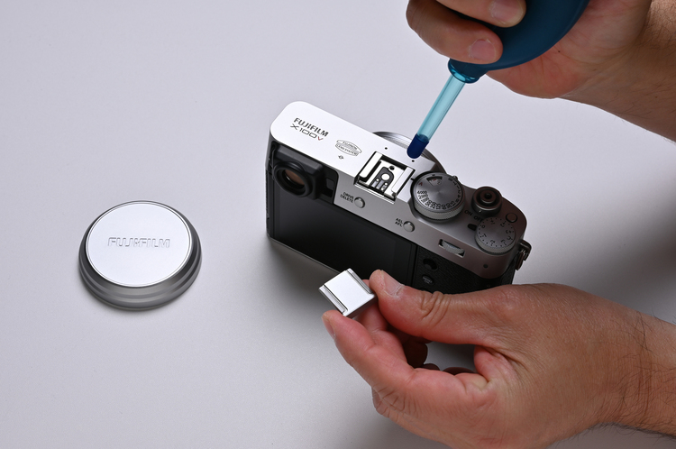 ブロワーで吹くときに、脱着可能なパーツがあったら外すといいでしょう。ホットシュー部分はボディ上面にあるためホコリが溜まりやすいです。シューカーバーがある場合は外して清掃しましょう。