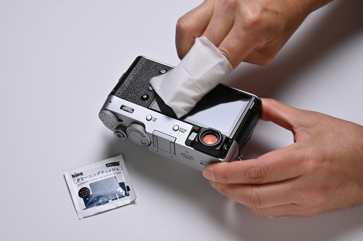また、最新のレンズには距離や絞り値などを液晶などで表示するものもあります。その表示窓もクリーニングペーパーで拭くのがオススメです。クリーニングペーパーはあらゆる部分をキレイにできるのでカメラバッグに常備しておきましょう。1枚を使い回しせず、レンズなら前玉を拭いたら後玉は新しい1枚を使用するなどが望ましいです。