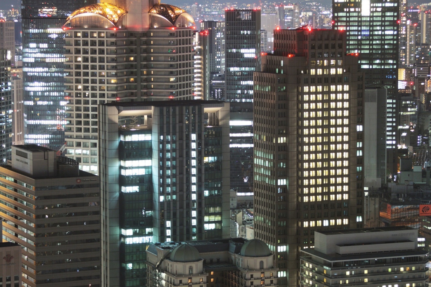 夜のビル群を撮影したい場合は、日が沈んで暗くなった21〜22時頃がベストです。多くのオフィスの消灯時間は22時ごろなので、それを過ぎてしまうと窓からこぼれる光がまばらになってきます。