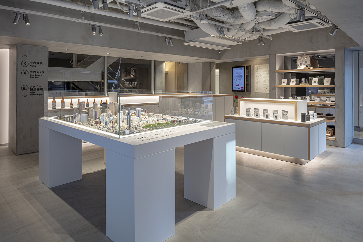 店頭でお出迎えしてくれるジオラマは、写真の新しい価値を表現した1/1000の「新宿写真」を展示。見れば見るほど精細に造られたこのジオラマを、スマートフォン・カメラ・ビデオカメラなどで撮影することで、来店のご記念や写真を通した話題提供になればという願いが込められています。