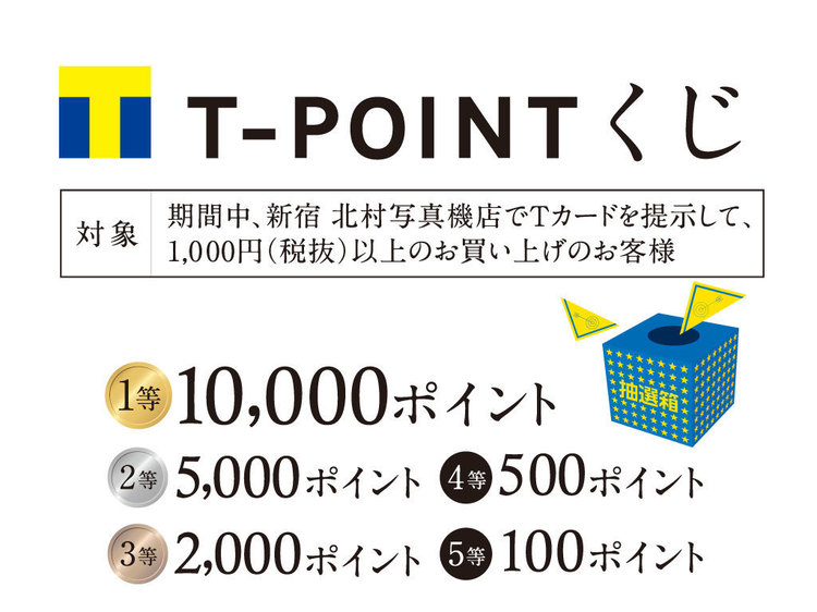 ■対象:期間中、新宿 北村写真機店でTカードをご提示の上、1,000円(税抜)以上のお買い上げのお客様