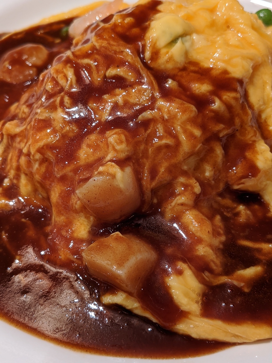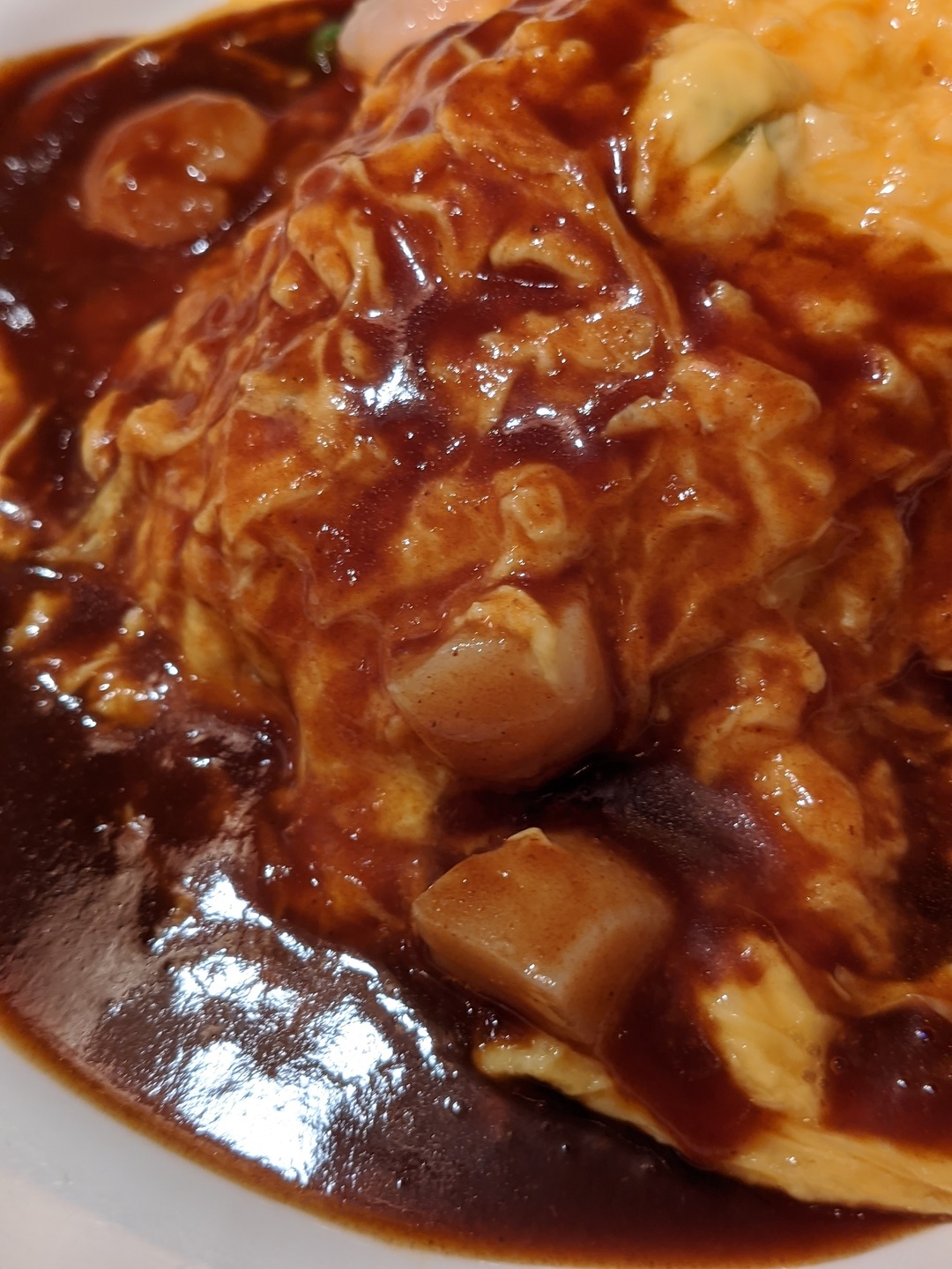 洋食の王様オムライスもスマートフォンの高さと位置をわずかに動かすだけでこんなに見栄えが違ってきます。何カットか撮影して食後にいいカットを選ぶのもいいでしょう