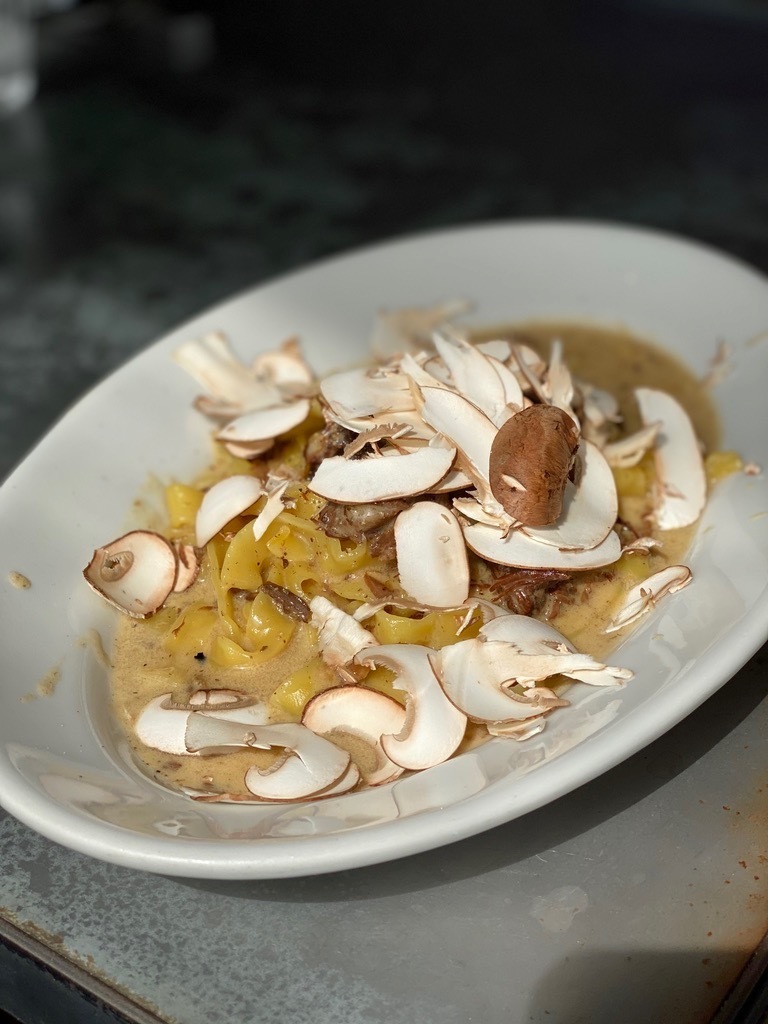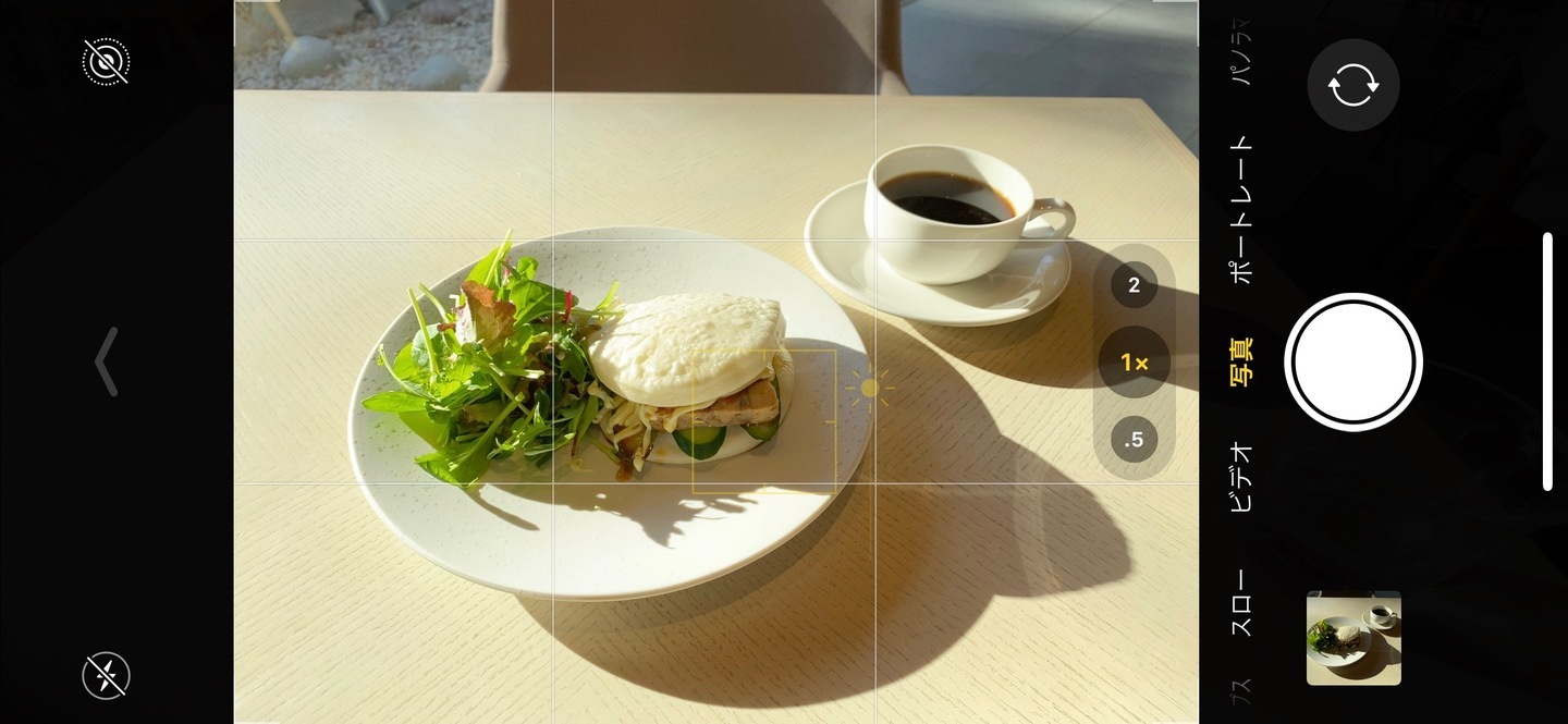 料理が運ばれてテーブルにセットされると、どうしても全体像を撮りがちです。記録として残すのであればもちろんそれでOKですが、ちょっとオシャレに見せたい場合は料理の中の「主役」を決めグッと引き立てて撮りましょう。iPhone 11 ProやPixel 4の場合、複数のカメラを搭載していますので、望遠カメラに切り替えて撮ることをオススメします。