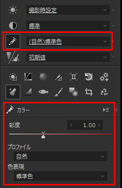 カラー(彩度)では、サブコントロールで彩度・色表現の調整ができます。