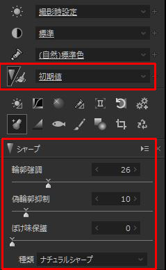 また種類を選択するとシャープの種類が選べるようになり、アンシャープマスクの設定も可能です。