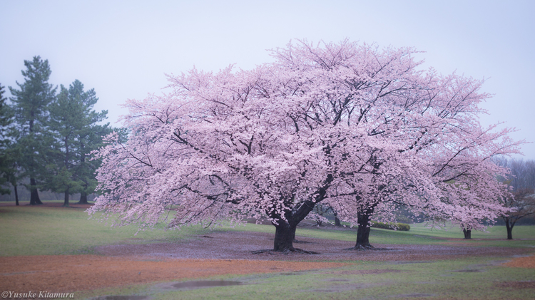 地元の公園にて。いつもなら桜の時期は賑やかな公園ですが、この時は大雨が降っていたので無人でした。筆者はあまり根性がある方ではないので、雨の日の撮影は好きではありません。ですが、桜を無人で撮りたいときは大雨大歓迎です。桜を広めに、且つ桜だけを撮りたい時は雨の日にチャレンジすることをおすすめします。勿論雨対策はお忘れずに。いつもは白っぽいピンクのソメイヨシノも、雨に濡れるとはっきりとしたピンクで写ることも多いです。それも雨の日がおすすめである大きな理由です。