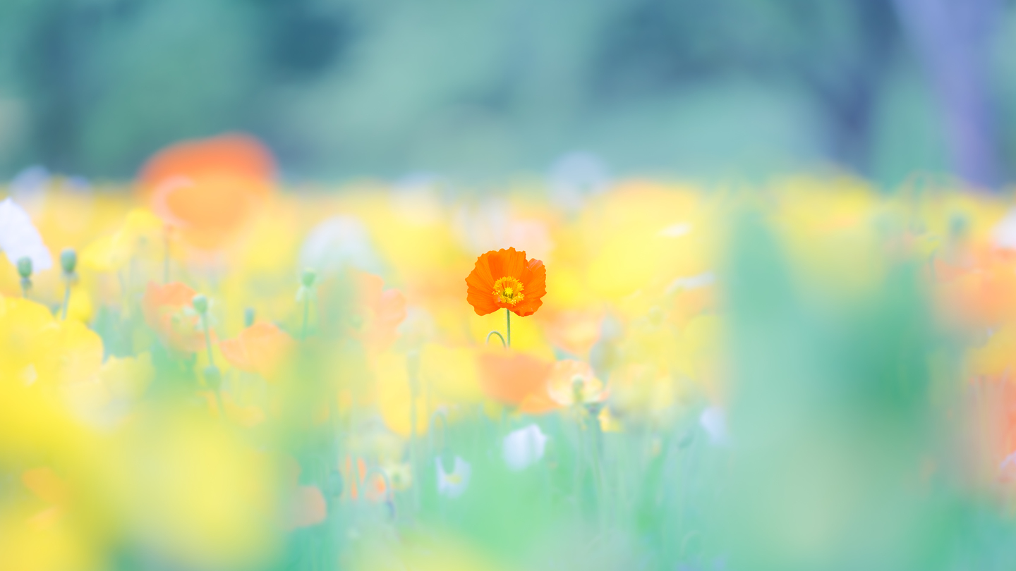 アイスランドポピー畑でこちらを向いている一本