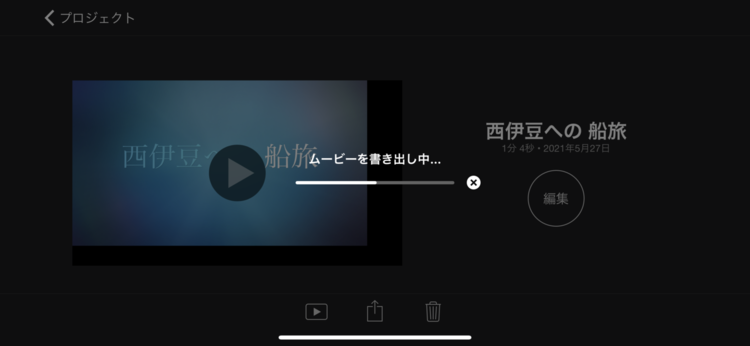最終チェックが終わってOKなら完成ムービーを書き出しましょう。編集画面の状態で左上の「完了」アイコンをタップします。次に画面下部の真ん中のアイコンをタップして「ビデオを保存」すると「写真」アプリ内に書き出されます。