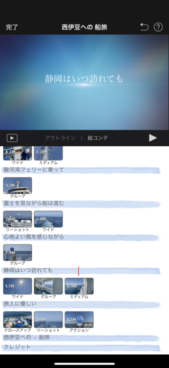 このように「絵コンテ」の上から全て作業していけば編集完了です!カンタンですよね?再生を繰り返して、おかしなところや気に入らない部分を修正したら完成です!