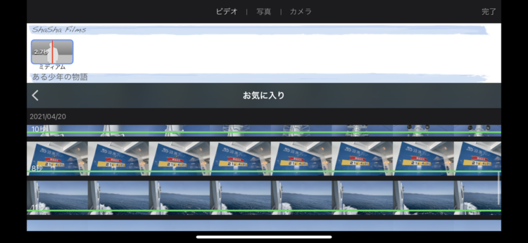 と、このように気に入って使えそうなカットがあったら、画面下部にある「ハート」アイコンをタップして「お気に入り」のマーキングをしておきましょう。あとでムービーをピックアップしやすくなります。