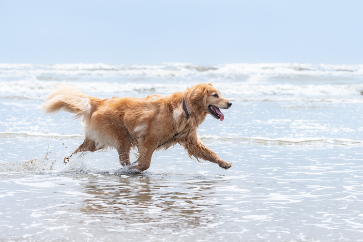 海の中を泳がなくても波打ち際を走るだけで絵になります。バシャバシャと水しぶきをあげながら走る姿を速いシャッタースピードで捉えましょう。