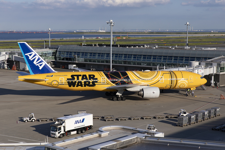 ■スポッティング撮影では横位置の写真がマスト。機体後方にあるJA743Aという機体番号がハッキリ写っているかが重要です。また、こういったスペシャルマーキング機を狙うのも醍醐味となります。