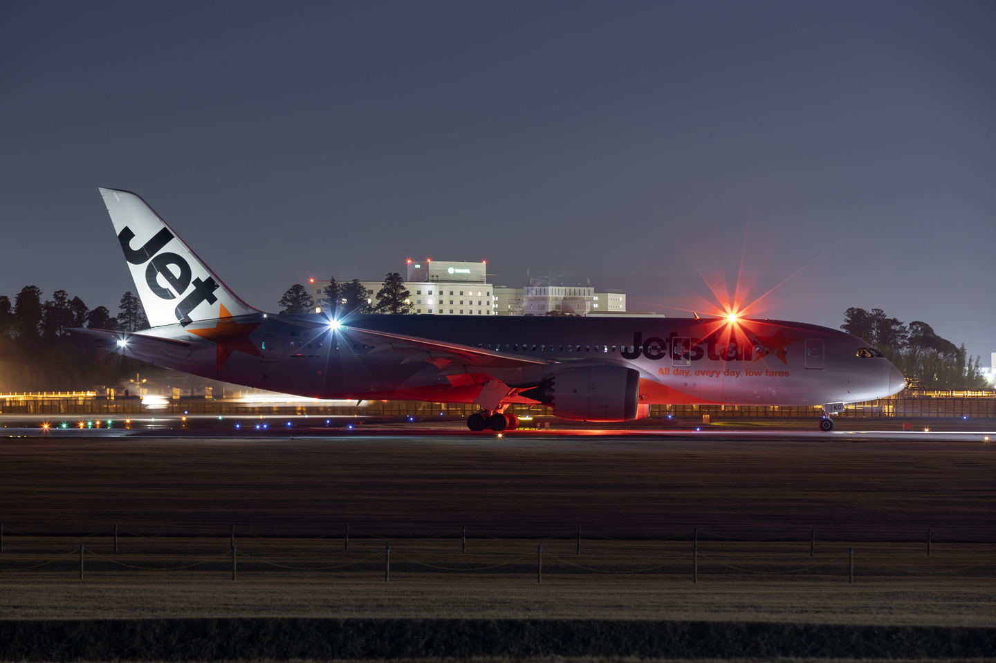 ■スポッティングカットは日中が基本ですが、やむを得ず夜に撮る場合は長秒時露光撮影を駆使し、機体が止まる瞬間を狙いましょう。ISOをできるだけ低く高画質で撮る目的です。