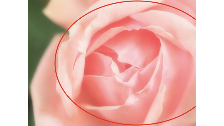 料理やお花を撮影するときに使いやすい構図になります。お皿全体を撮影すると、料理自体が小さく写り、美味しさが伝わりにくくなってしまうため、お皿の一部分を切るようにしてフレーミングすると料理が大きく写り、美味しさが伝わりやすい写真になります。そのときにアルファベットのCの文字を意識して、お皿の一部分をカットすると構図が安定しやすくなります。お花をC字構図で撮影すると、お花の一部分をクローズアップして撮影できるため、花びらのグラデーションの美しさや自然の神秘さを感じる一枚に仕上がります。