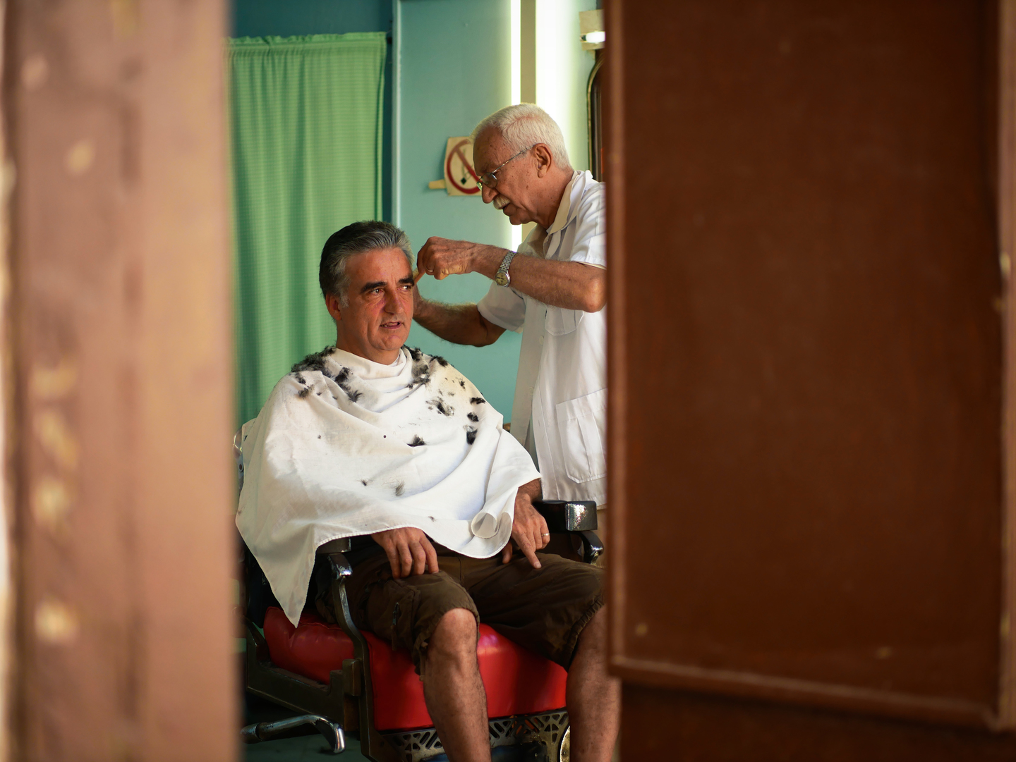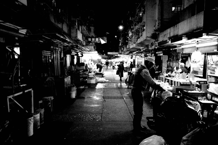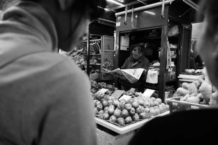 そして、もう一つの方法は交点に被写体を配置する方法です。下の写真のように犬の顔を交点に配置することで、犬の表情だけでなく、その街の雰囲気が伝わりやすくなります。撮りたい被写体を交点に配置することで、背景とのバランスが安定し、ストーリー性のある写真を撮ることができます。被写体だけでなく、その場の雰囲気も一緒に際立てたいときは三分割構図を意識してみましょう。