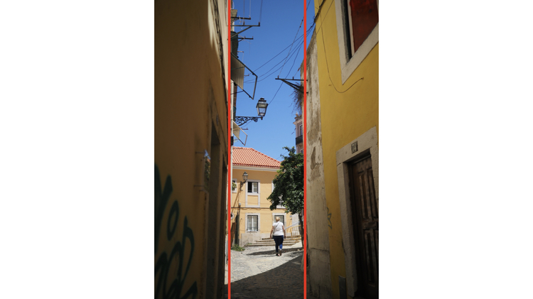 壁や建物の隙間から奥の被写体へと視線誘導させる構図になります。額縁構図、トンネル構図同様に手前にある被写体や明暗差を生かして、奥の被写体を際立てることができます。写真に奥行きを表現したり、ドラマチックに表現できる構図になるので、ぜひ活用してみてください。撮りたいメインの被写体だけでなく、手前にあるものなども意識してみると、奥行きのある写真を撮ることができます。