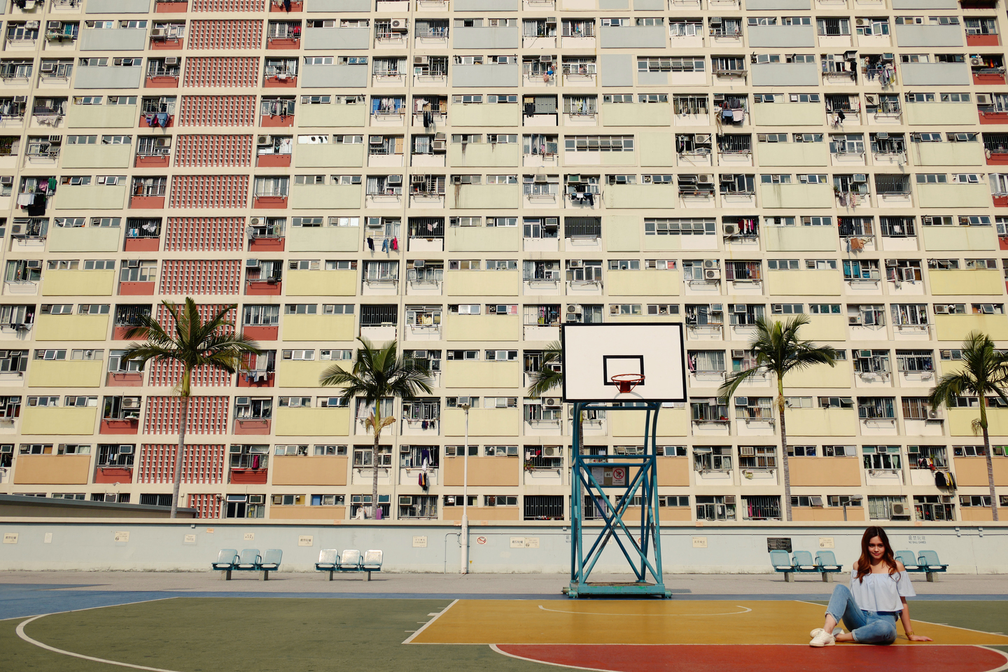 シンメトリーで被写体を切り取ると、ユニークな写真表現を楽しむことができます。建物や壁などでシンメトリー構図を活かしたい場合は水平垂直になるように撮影してみましょう。線をまっすぐに表現することで安定感が出やすくなります。スナップでシンメトリー構図を活用する場合は被写体を対比しながら、撮影してみるのもおもしろいと思います。背景をシンメトリーになるように構図を決めて、人物と猫を左右対称になるように配置してみました。