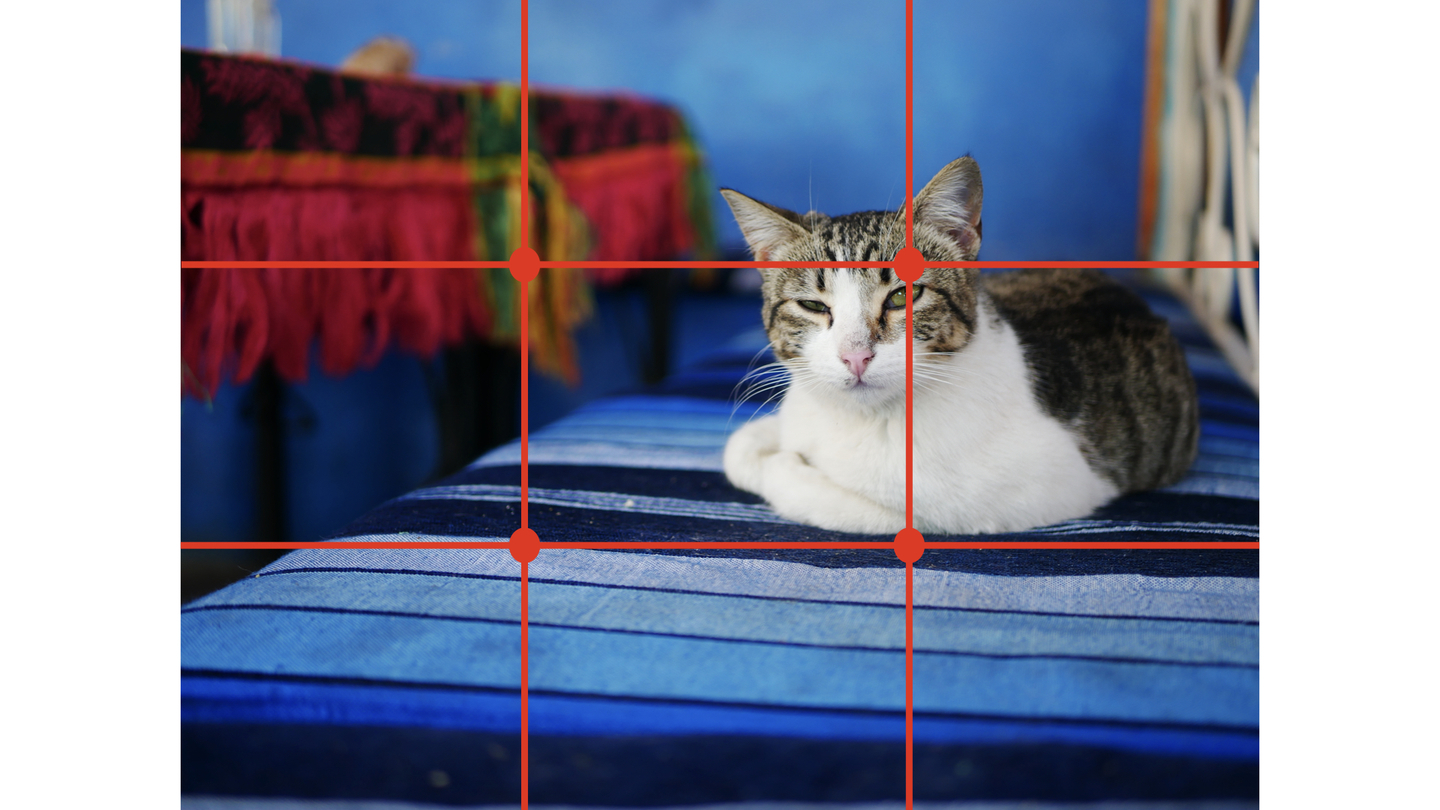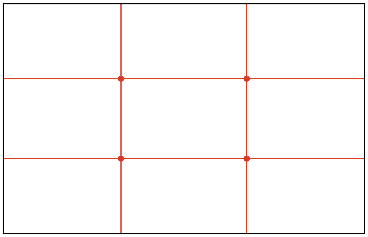 三分割構図は縦と横を三分割した構図のことです。縦と横の線が交わった部分を交点といいます。