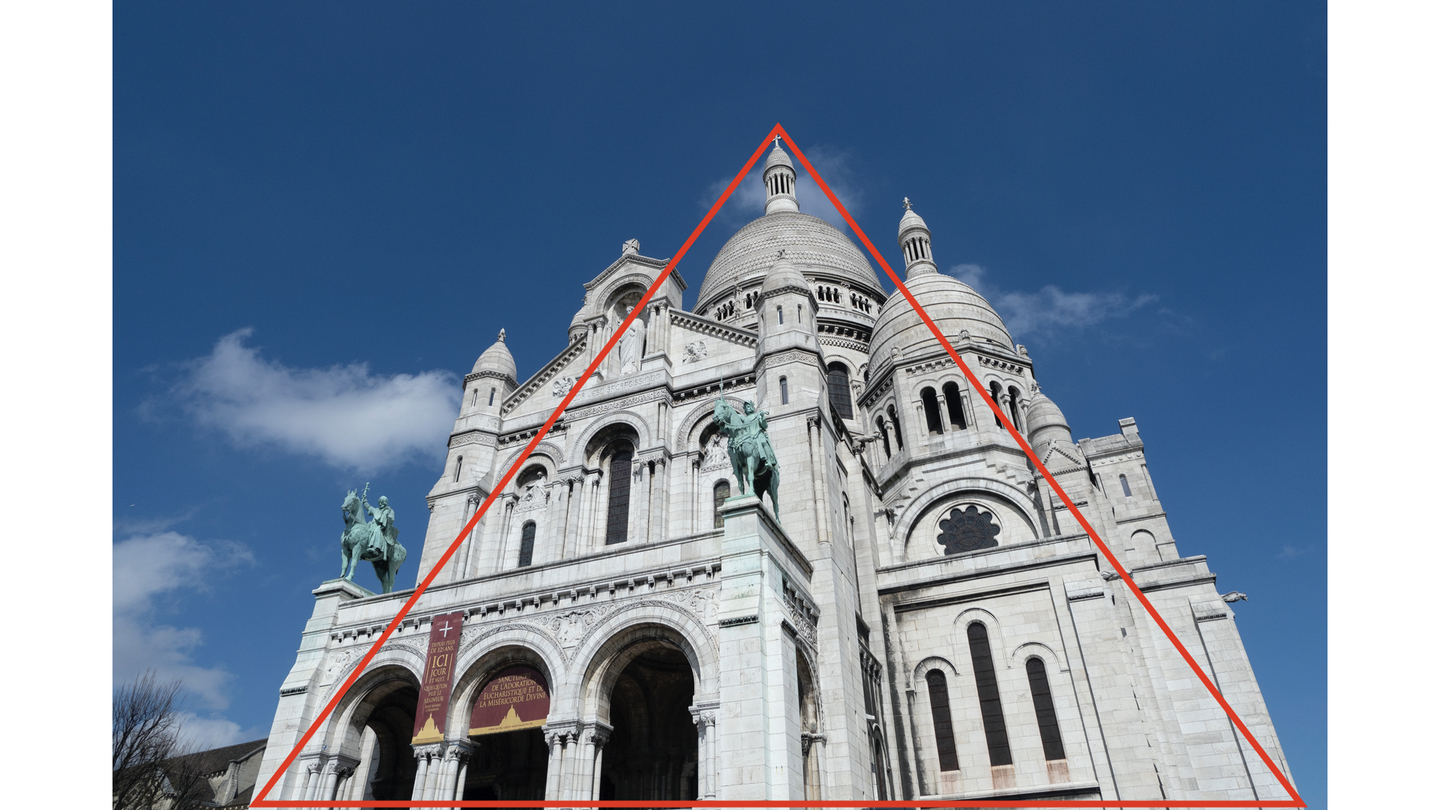 建物などを下から撮影すると、上がすぼまり、三角形のような形になります。それが三角構図です。建物の高さや、道の奥行きを表現したいときに活用してみましょう。また安定感や重厚感なども表現しやすいのが三角構図の特徴です。