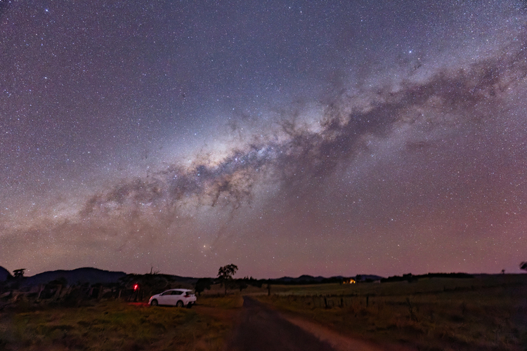 空が暗いところとは、天の川が肉眼で分かるような環境です。そういった場所で撮影を行う際のカメラの設定は、F2.8程度の明るいレンズでも、シャッタースピードが30秒、ISO感度が3200程度になります。30秒もシャッターを開けると、どんなに広角レンズで撮影をしても、星の流れが見て分かる写真になります。