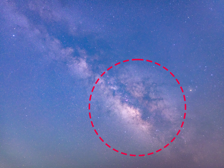 「夏の天の川」の一部分を指します。無数の星が集まり、まるで夜空を流れる川のように写る天の川は、誰しも一度は撮ってみたいと思う被写体ですが、その中でも、色彩豊かな星雲があり、暗黒星雲とバルジの対比が美しい銀河の中心部分は、赤道儀で撮影すべき領域です。