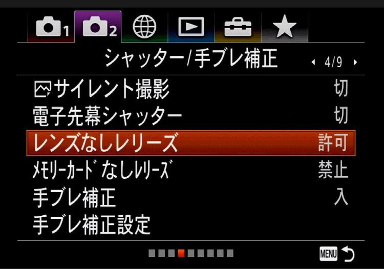 ■「レンズなしレリーズ」の設定を「許可」にする