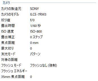 マウントアダプターを介しての撮影には幾つかの問題点も発生します。この「K&F Concept」マウントアダプターには電子接点は無いので、例えばExif情報の一部が記録されないことです。具体的には、撮影時の絞り値やレンズ情報、レンズの焦点距離情報などが記録されません。レンズ情報などは、撮影中に頻繁に交換しなければ後で情報を付加する事も簡単ですが、絞り値になるとなかなかそうはいきません。きちんと絞り値も残したい方は、撮影時にメモ(ファイル番号と絞り値)を取る事をお勧めします。撮影後にパソコンに画像を取り込んだ後に、メモを参考に情報を追記しましょう。
