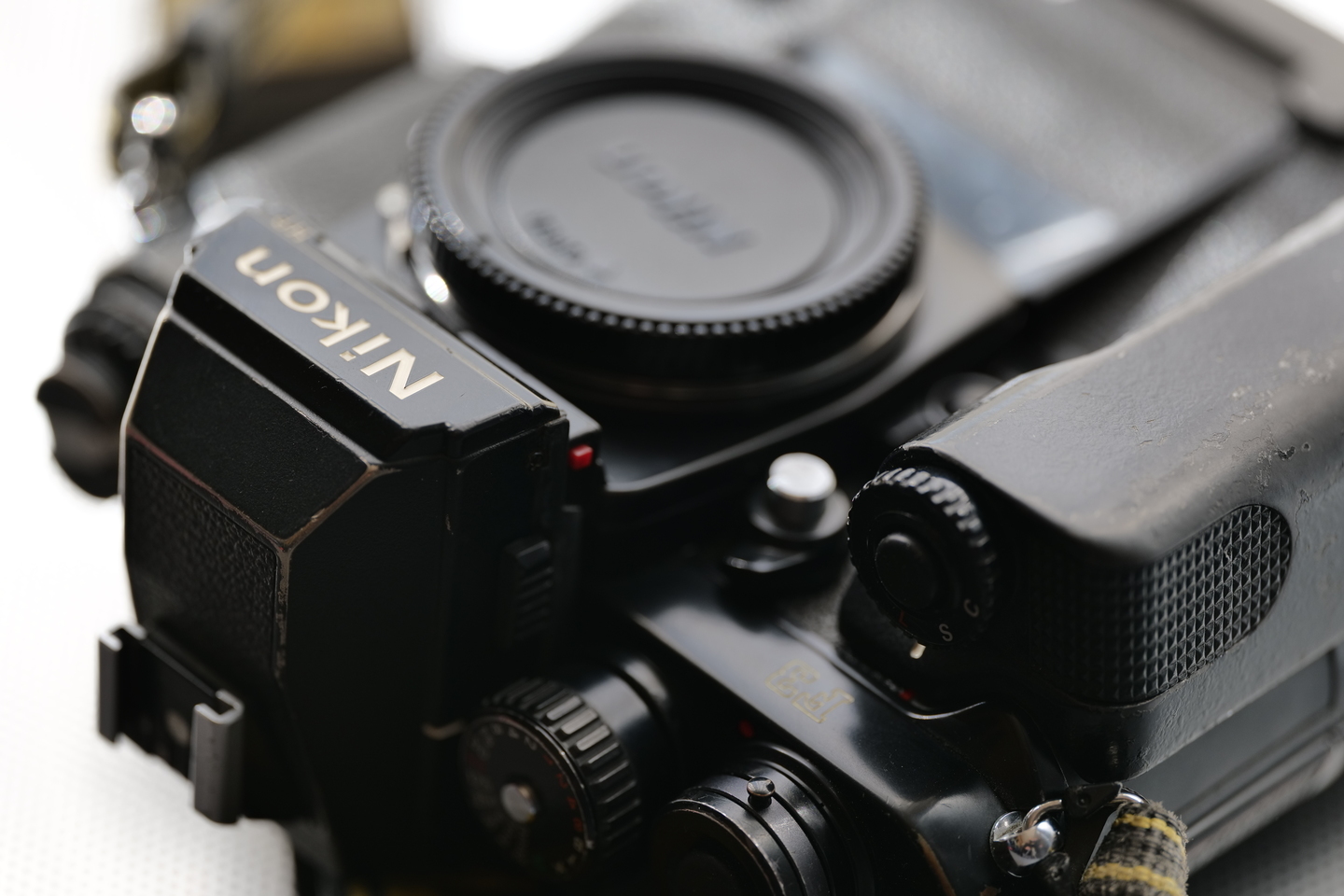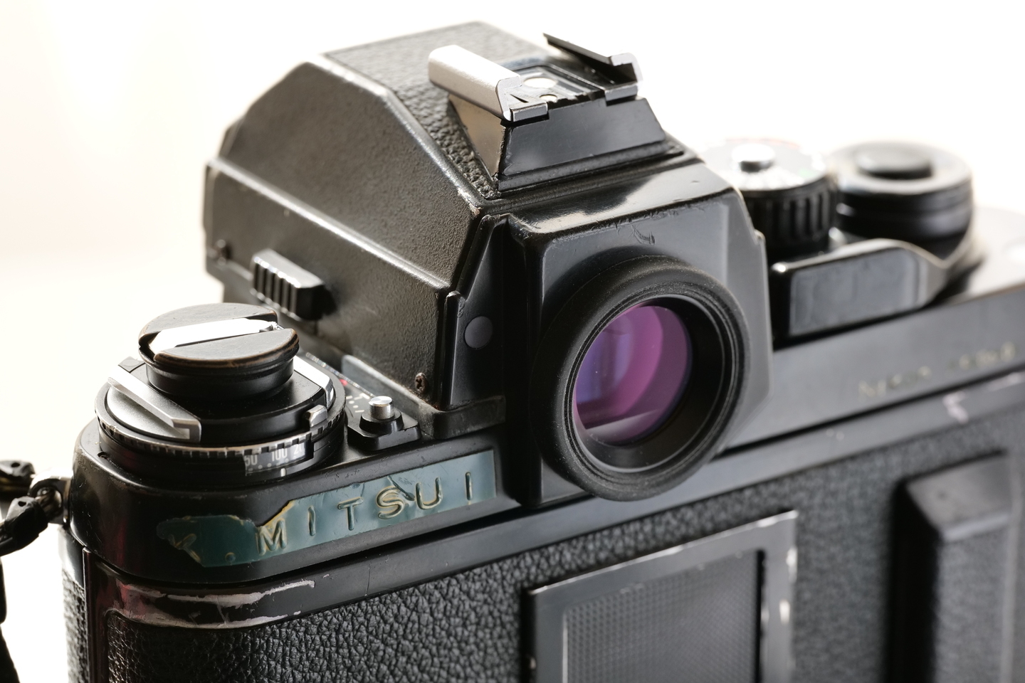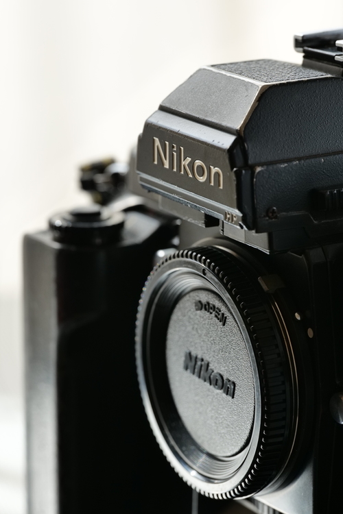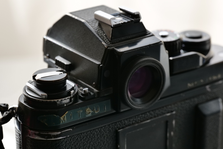 今度は背面のファインダー接眼部周辺を撮ってみましょう。このカットは窓辺に置いただけのカットです。今見てもこのニコン「F3」シリーズはカッコいいですね。新宿にある「北村写真機店」ではコンディションのいい個体が入荷している場合があります。興味がある方はぜひお店までどうぞ!