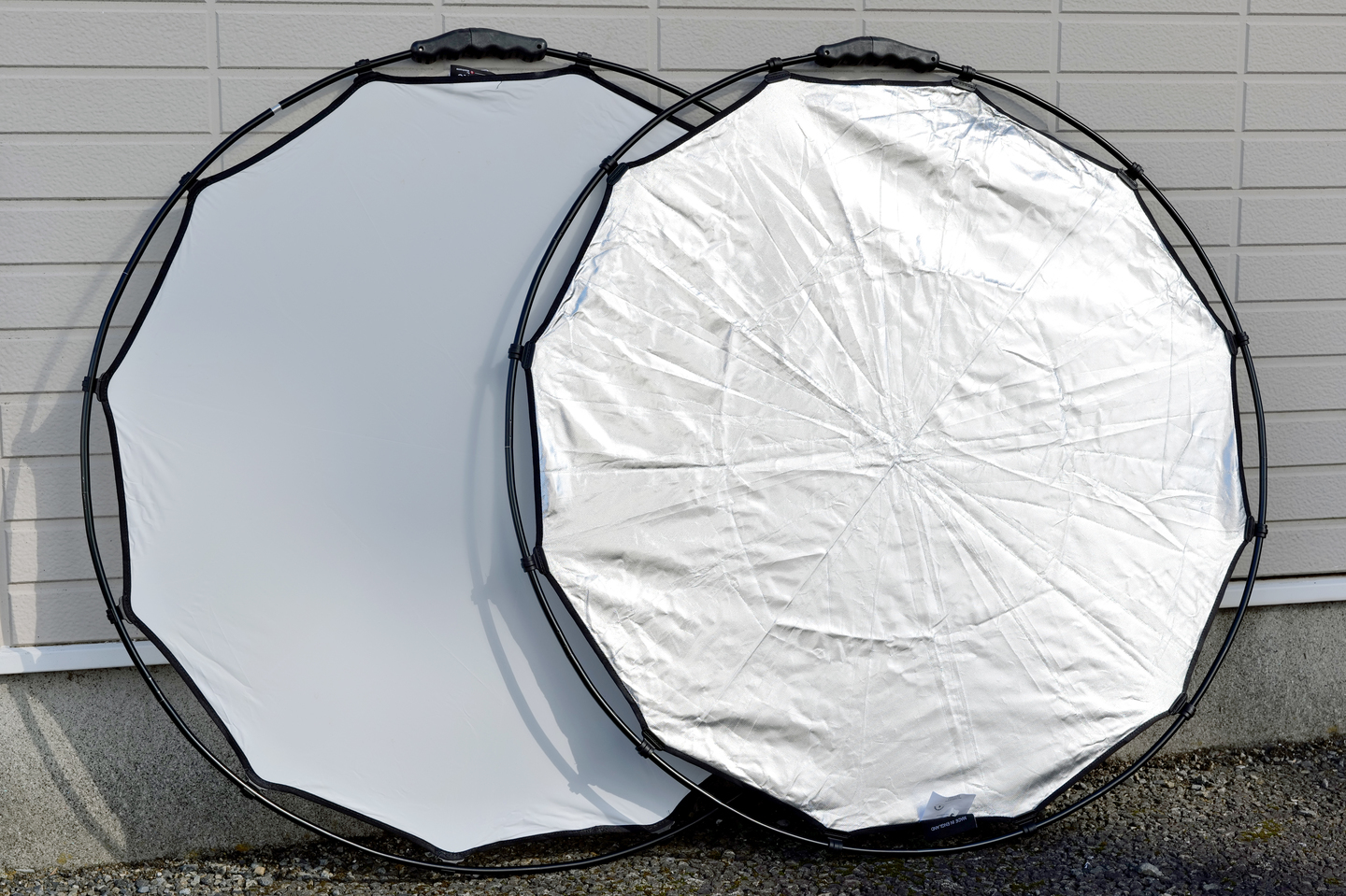 今回使ったディフューザーとレフです。マンフロット社の「ラストライト ハロコンパクト」シリーズです。今後ブランドがマンフロットに統合されていくようですが、世界中のフォトグラファーに愛用されている照明関係の人気あるブランドの製品となります。写真左が「ディフューザー」、右が「レフ」となります。