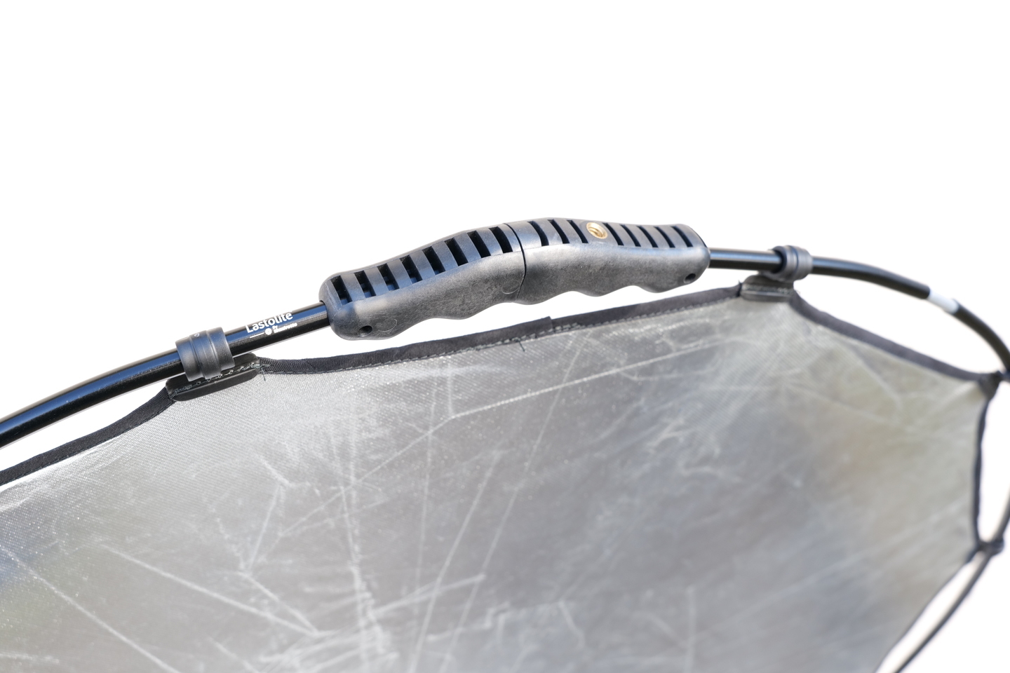 カメラの持つ金属の質感をもうちょっと出したい場合は「レフ」でそれを演出してみましょう。表がホワイト、裏がシルバーのマンフロット社「ラストライト ハロコンパクト リフレクター82cm シルバー/ ホワイト」を使ってみます。シルバーの面で太陽光をキラリと被写体に向けて反射してみます。
