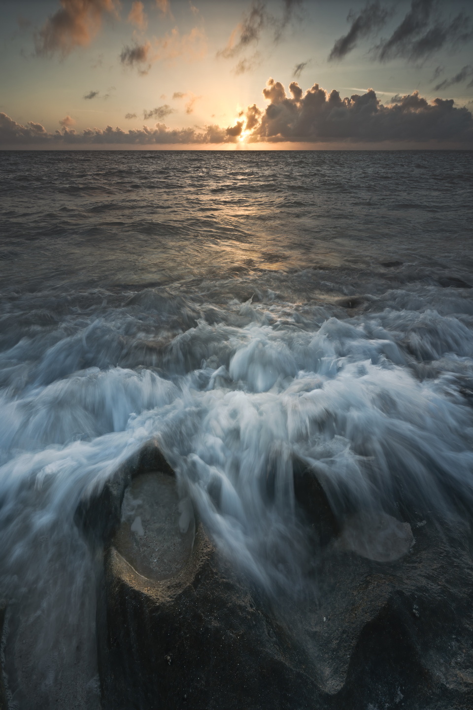 こちらも宮古島の海岸で撮影。波が岩にぶつかり砕ける様子が特徴的だったので、シャッタースピードを変えながら、砕ける波の動きを捉えられる瞬間を狙って撮りました。